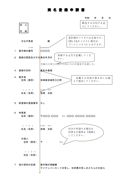 印刷して、印紙9,000円を貼付して、『住民票の写し』か『マイナンバーカードの写し』を同封して文化庁に提出という流れになる。