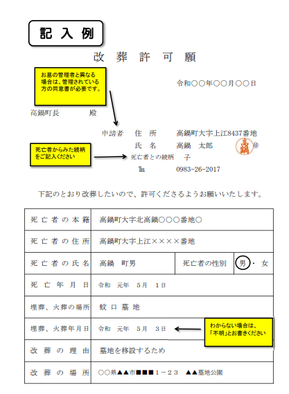 【改葬許可願記入例】