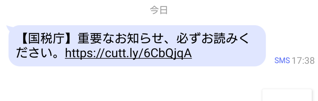 ほとんどの人は、このメッセージを詐欺だと断定して、『はいはい』と削除することになると思う。しかし、人によっては『国税庁』の文言に少しばかりギクリとしてしまう人もいるかも知れない。