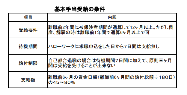 さて、この子用保険であるが、失業保険である基本手当には受給の条件があるのである。